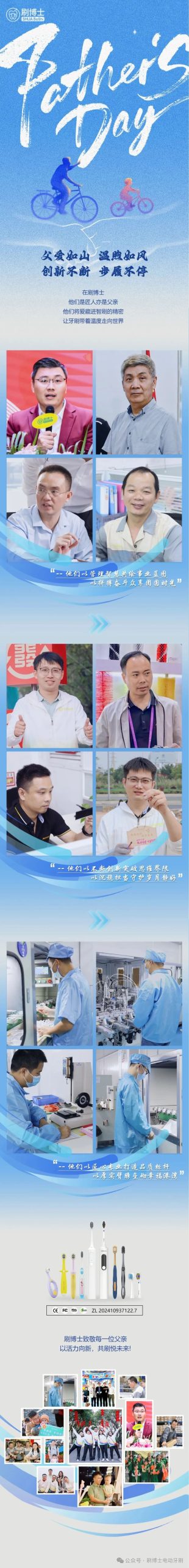 父亲节之际,刷博士向每一位伟大的父亲致敬。继续秉持以匠心打造更多优质牙刷产品,与大家一起“刷”出更美好的未来 ,守护每一个家庭的口腔健康。